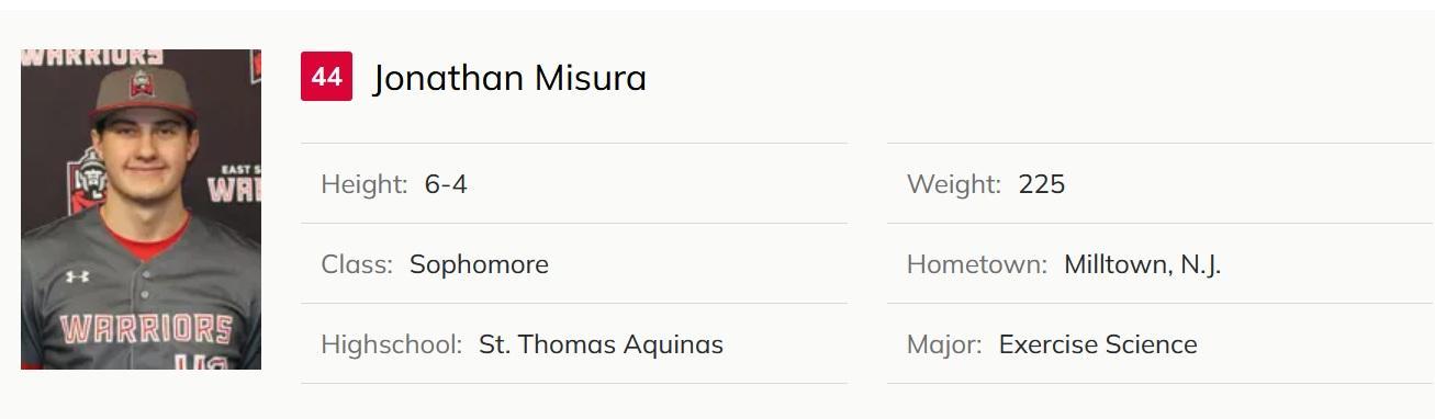 Since August 2024, Misura has attended East Stroudsburg University (ESU), completing his Freshman year and retaining his scholarship and placement on the school’s baseball team.