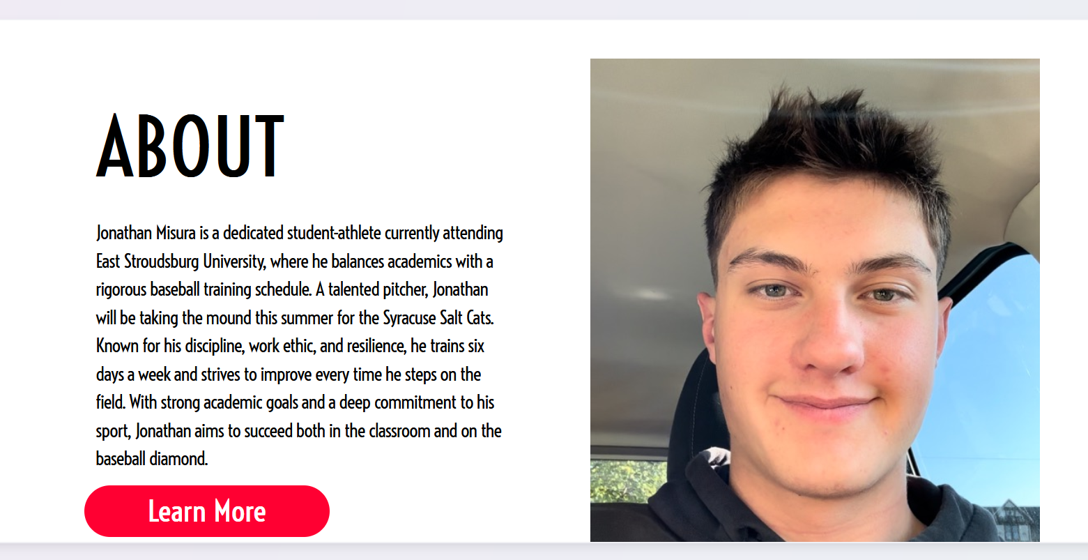 Misura, who is now a Sophomore, has been leaning into baseball, joining a collegiate baseball team, the Syracuse Salt Cats, as a pitcher in the off season. The Syracuse Salt Cats are sponsored by Major League Baseball (MLB) and several past players have been scouted into MLB. Misura, who has clearly been emboldened by the lack of consequences, is now interested in pursuing a shot with the MLB. Evidence of which can been seen from the website he created to try and get his name out further in the baseball sphere and attract MLB attention.
